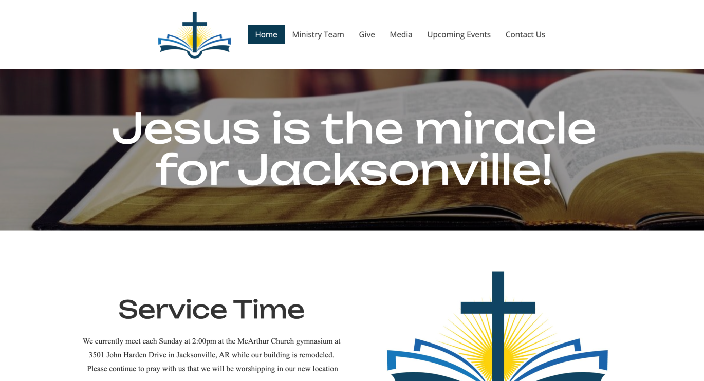 This is the site for a small church congregation in Jacksonville, AR. We handle all social media and media for advertising and sermon media.